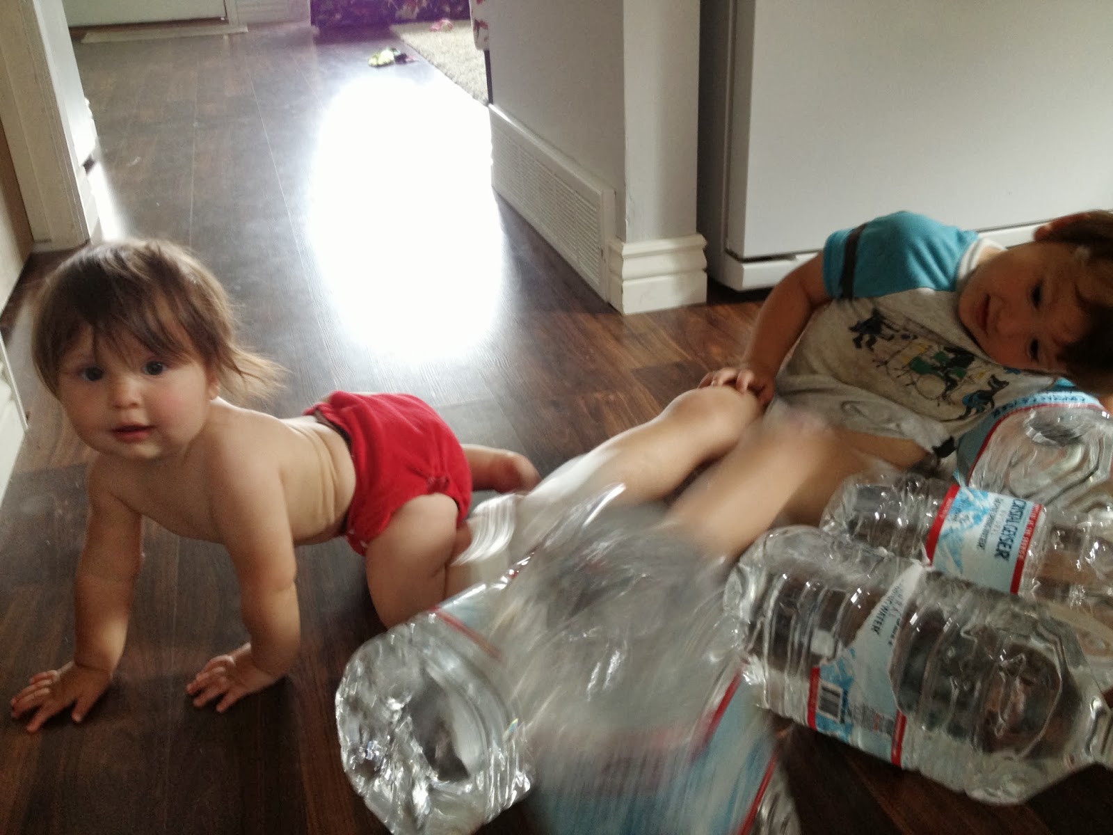 Julian is almost three. He is talking to us more about everything and always says "hi mommy" to me and I'm glad for that! He tries to count stuff and is figuring out all the shapes and colors and loves his story time! He also likes to play with play dough, color and cut, as well as help me cook everything. He is a big helper. He also LOVES to play with his little sister. They play tag together and she chases after him in the walker. They play with a lot of stuff together which is very fun see. Julian also gets even more into everything (as if I had ever thought that was possible) and is so, crazy. Here is a copy of a text that I sent to Aaron last week,